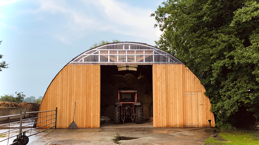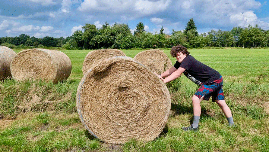 Damit die Kühe im Winter Futter von bester Qualität bekommen, werden die Heuballen auf dem Land nochmal gedreht! Dadurch trocknen auch die Liegestellen vor dem Einlagern im Stall gut durch.