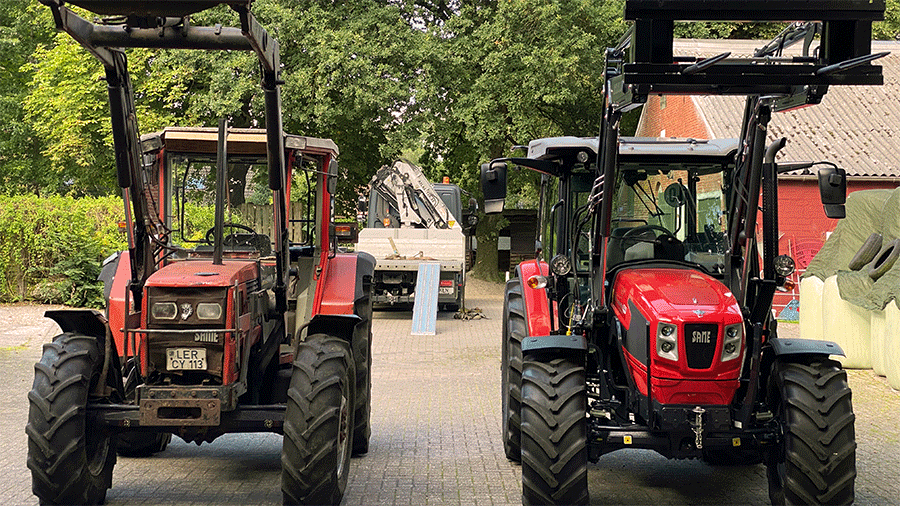 Im letzten Monat haben wir uns von unserem alten Schlepper, dem Explorer, getrennt und nach 30 stolzen Jahren einen neuen Kompaktschlepper erworben! Er ist so klein, dass er in unseren Stall fahren kann und so groß, dass wir dafür alle Spiegel einklappen müssen... :D Der perfekte Trecker zum Mitfahren für große und kleine Trecker-Fans!