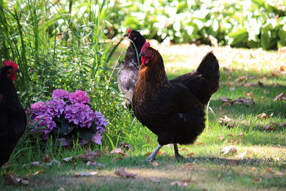Unsere Hühner haben das große Los gezogen und dürfen als klassische Schar wie im Bilderbuch durch die Freiheit ziehen. So lange keine Vogelgrippen-Gefahr herrscht, können die kleinen Racker tagsüber nämlich ganz ohne Zäune oder Mauern auf dem gesamten Hofgelände herumstrolchen.