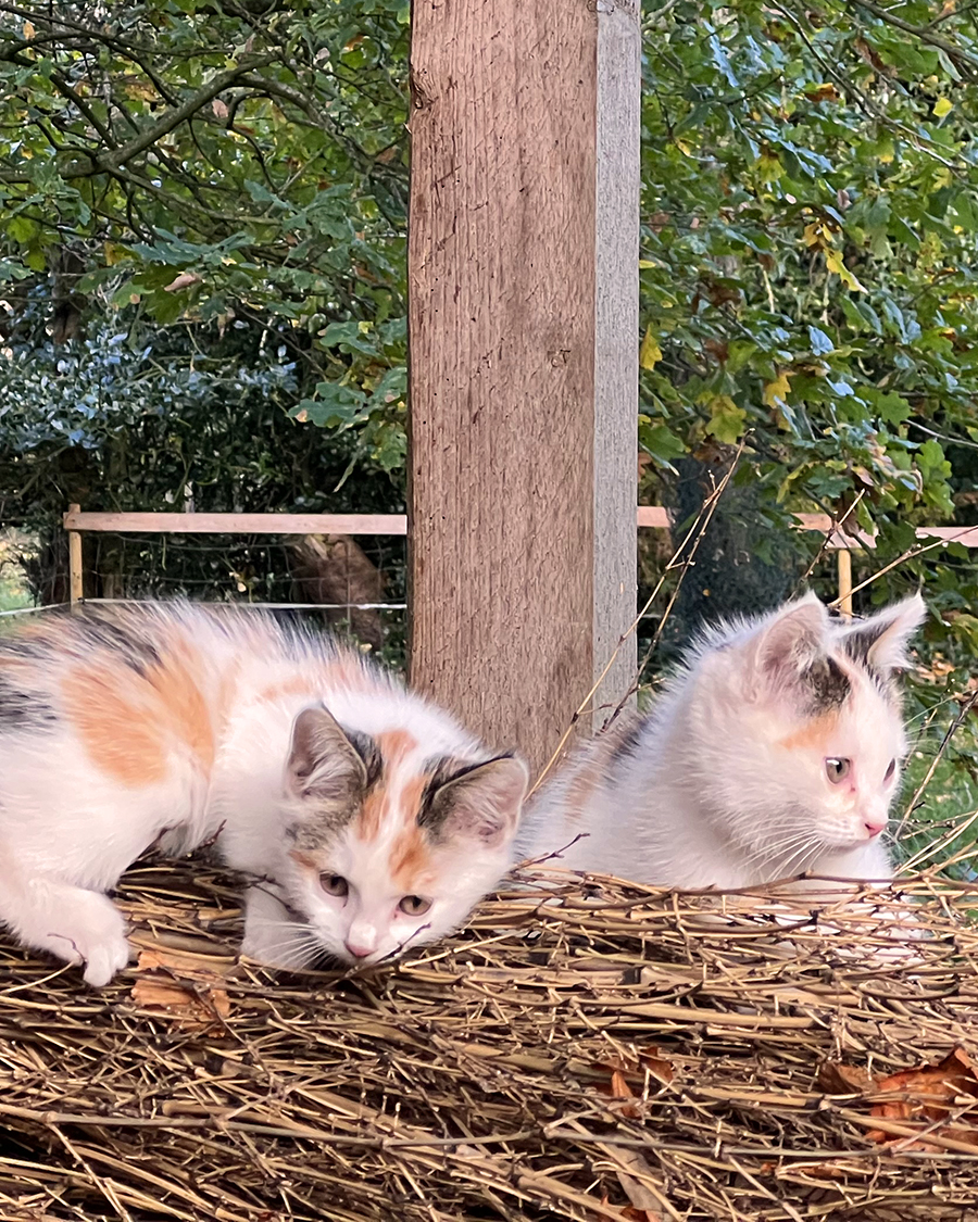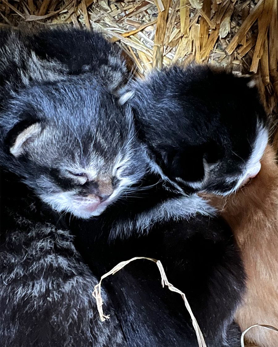 Seit Oktober 2022 sind drei junge Katzendamen auf unseren Hof gezogen. Kitty, Miezi und Kampffisch! Unsere kleine Kampffisch hat Nachwuchs bekommen uns wir begrüßen vier neue kleine Winzlinge. Auch Miezi und Kitty kümmern sich rührig und die kleinen wachsen so umsorgt und bekümmert auf wie irgend möglich!